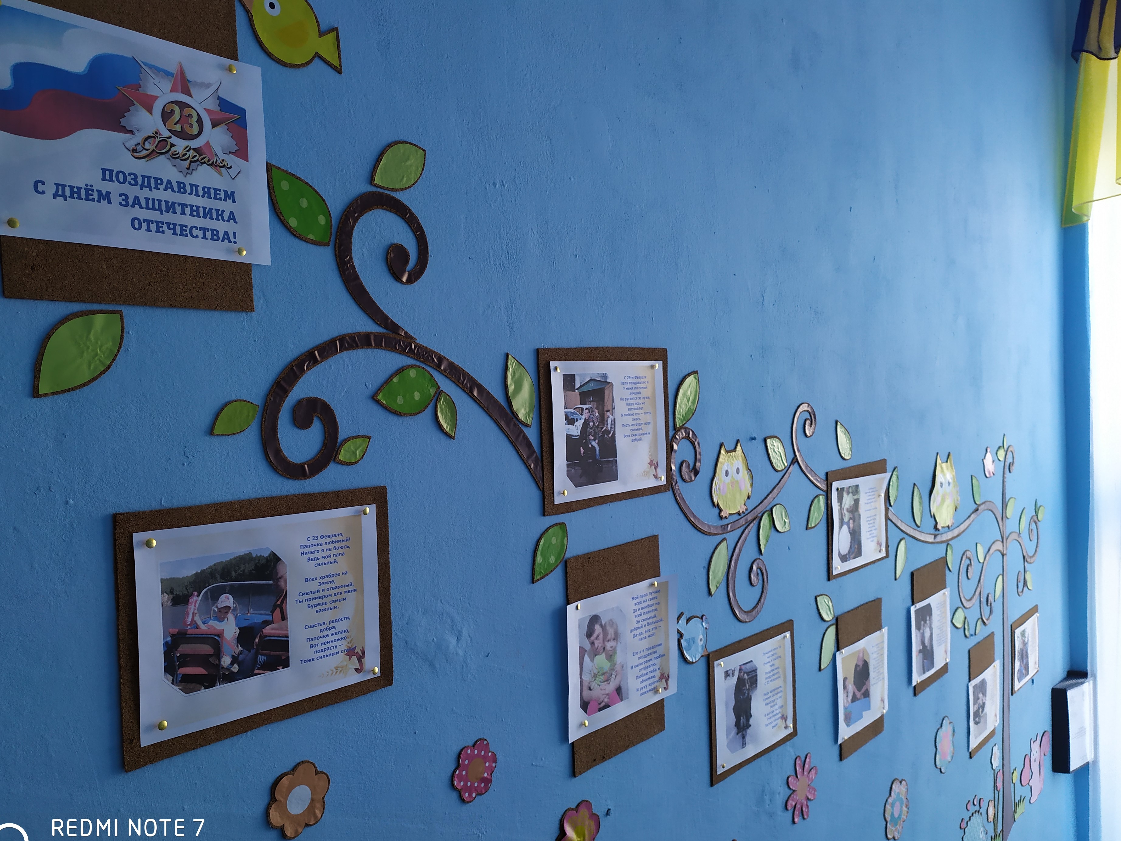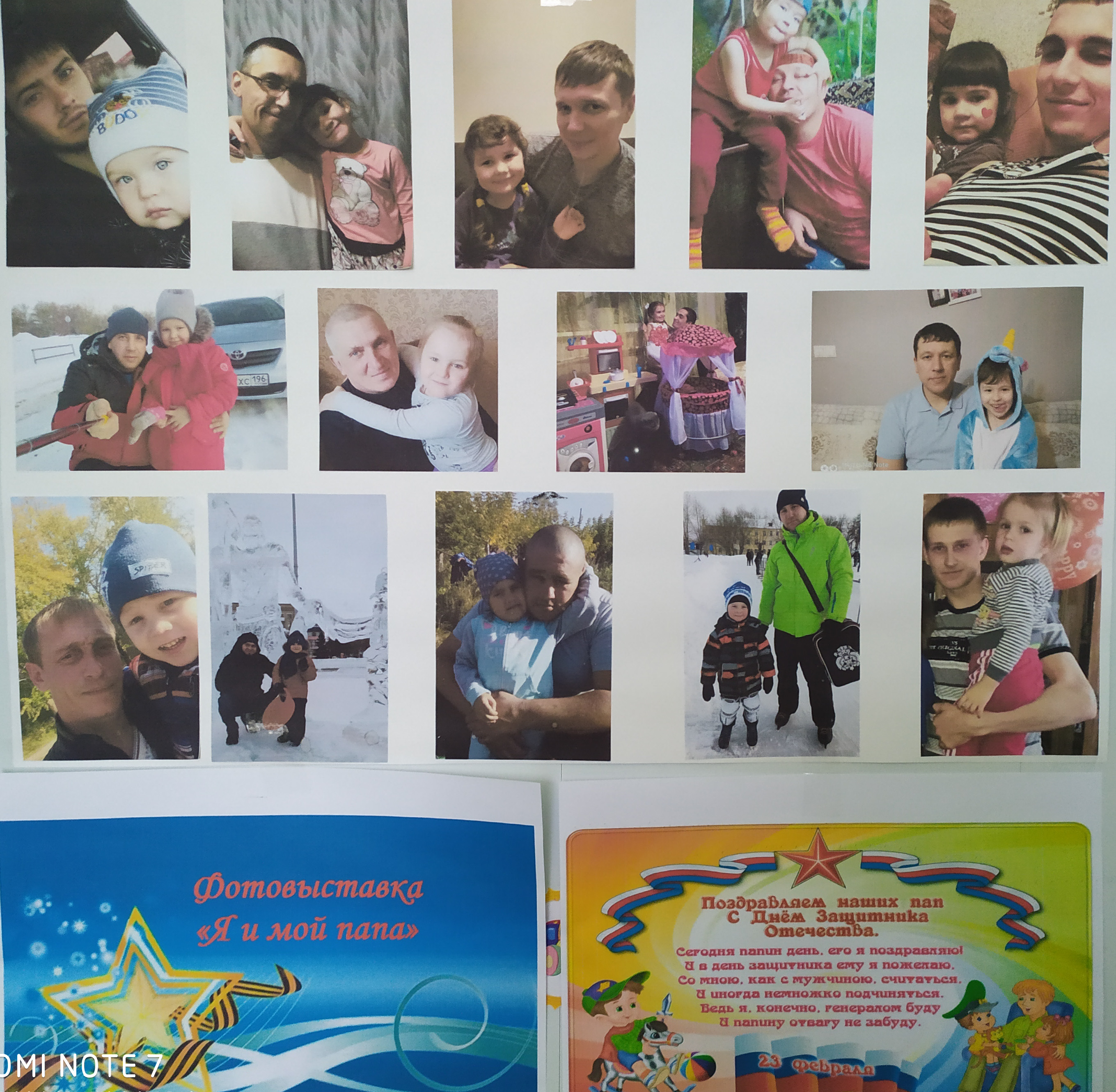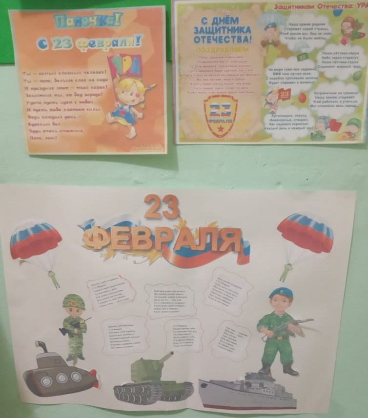 Был изготовлен стенд «Слава защитникам Отечества», где были размещены фотографии пап, которые служили в Армии.