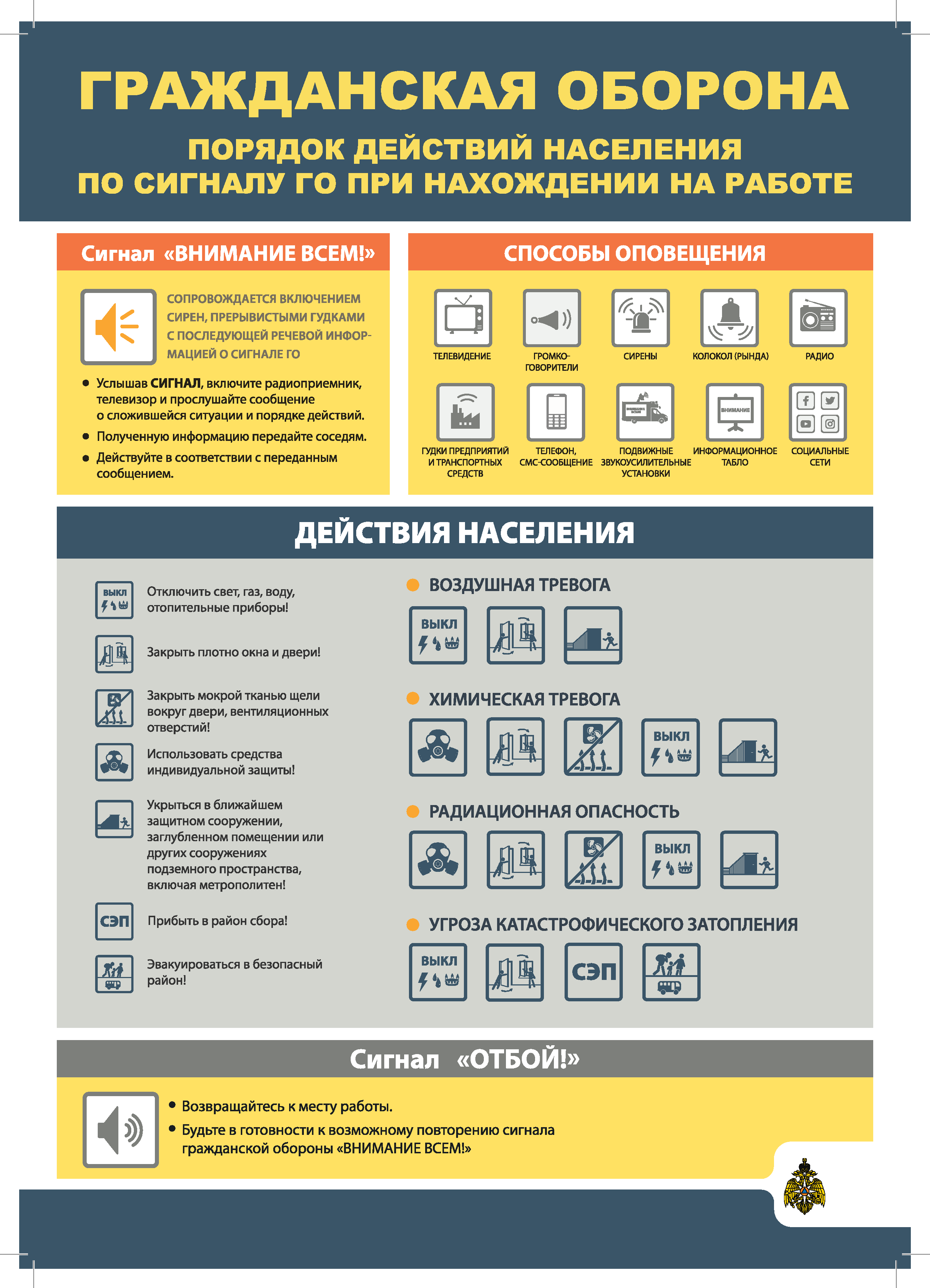 Порядок действий населения по сигналу ГО при нахождении на работе
